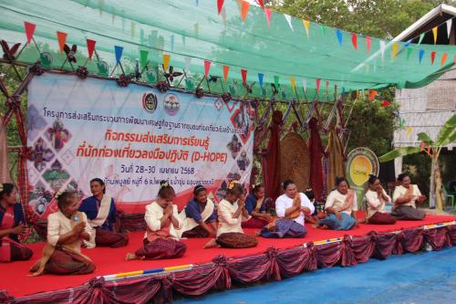 วัตถุประสงค์ในการดำเนินโครงการฯ ครั้งนี้ 1) เพื่อสนับสนุนการจัดทำโปรแกรมเพื่อถ่ายทอดองค์ความรู้ และรูปแบบกิจกรรมส่งเสริมการเรียนรู้ที่นักท่องเที่ยวลงมือปฏิบัติ (D-HOPE) ในการส่งเสริมการท่องเที่ยวในชุมชน 2) เพื่อรองรับการบริการนักท่องเที่ยวได้ และมีการประชาสัมพันธ์ผู้ประกอบการชุมชน และชุมชนท่องเที่ยว ให้เป็นที่รู้จักแก่นักท่องเที่ยวและบุคคลทั่วไป