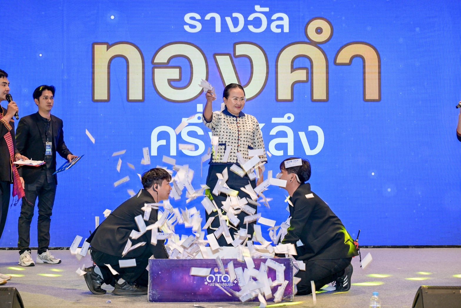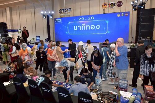 โดยในวันนี้ สำนักงานพัฒนาชุมชนจังหวัดอุบลราชธานี นางกนกอร โพธิ์สิงห์ พัฒนาการจังหวัดอุบลราชธานี ร่วมเป็นเกียรติจับรางวัลทองคำ 4 รางวัลในเวลา 1 ทุ่มตรง และมอบหมายให้ นางสาวราตรี เกตุวิริยะการ ผู้ช่วยผู้อำนวยการกลุ่มงานสารสนเทศและการพัฒนาชุมชน ร่วมจับรางวัล Gift Voucher จำนวน 10 รางวัลแก่ผู้โชคดีที่มาร่วมช้อปสินค้าภายในงานในช่วงบ่ายวันนี้ การจัดแสดงและจำหน่ายผลิตภัณฑ์ OTOP ระดับ 1-5 ดาว กว่า 188 บูธ จาก 72 จังหวัดทั่วประเทศ แบ่งเป็นประเภท 1 - 5 ดาว จำนวน 148 บูท ประเภทชวนชิม 40 บูท จังหวัดอุบลราชธานี ได้รับการจัดสรรพื้นที่ 19 บูธ ซึ่งเกือบทุกร้านเข้าร่วมโครงการ "คนละครึ่ง พลัส