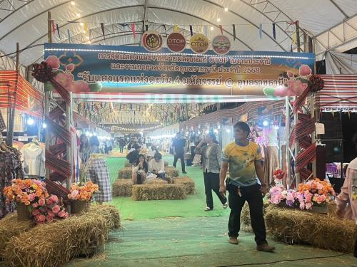วันนี้ได้รับเกียรติจาก ร้อยตรีสรมงคล มงคละสิริ รองผู้ว่าราชการจังหวัดอุบลราชธานี มาเยี่ยมชมและให้กำลังใจแก่ผู้ผลิต ผู้ประกอบการ otop โดยสำนักงานพัฒนาชุมชนจังหวัดอุบลราชธานี จัดแสดงและจำหน่ายผลิตภัณฑ์หนึ่งตำบล หนึ่งผลิตภัณฑ์ ซึ่งมีผู้ผลิต ผู้ประกอบการเข้าร่วมจัดแสดงและจำหน่ายผลิตภัณฑ์ ทั้งหมด 20 บูธ แยกเป็น ประเภทผ้าและเครื่องแต่งกาย 14 บูธ ประเภทของใช้ของตกแต่งของที่ระลึก 4 บูธ สมุนไพรที่ไม่ใช่อาหาร 2 บูธ โดยวัตถุประสงค์เพื่อจัดแสดงจำหน่ายผลิตภัณฑ์หนึ่งตำบล หนึ่งผลิตภัณฑ์ (OTOP) เพิ่มช่องทางการตลาดผลิตภัณฑ์หนึ่งตำบลหนึ่งผลิตภัณฑ์ สร้างรายได้ให้กับชุมชน ตลอดจนเป็นการเผยแพร่และประชาสัมพันธ์ โครงการหนึ่งตำบล หนึ่งผลิตภัณฑ์ สร้างโอกาสในการเรียนรู้และทักษะในการจัดแสดงสินค้าให้กับผู้ผลิต ผู้ประกอบการ OTOP