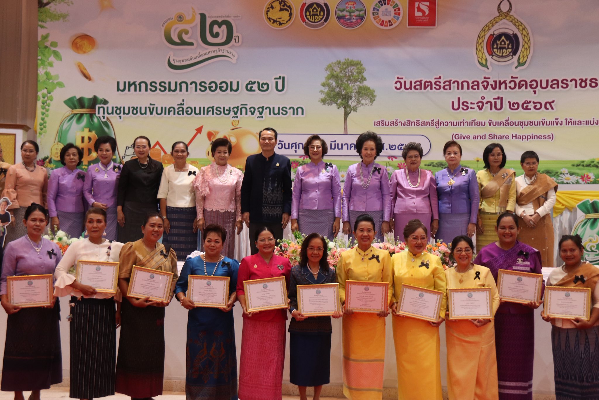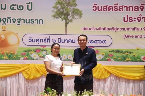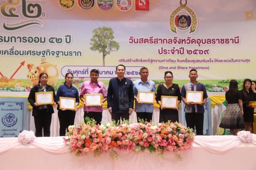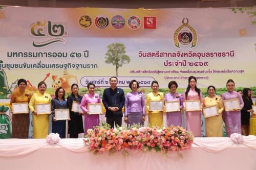 ภายในงานมีกิจกรรมสำคัญหลากหลาย อาทิ การมอบเกียรติบัตรแก่กลุ่มออมทรัพย์เพื่อการผลิตและศูนย์จัดการกองทุนชุมชนดีเด่น จำนวน 6 แห่ง เพื่อยกย่องเชิดชูเกียรติและสร้างขวัญกำลังใจแก่กลุ่มที่มีผลการดำเนินงานโดดเด่น รวมทั้ง การมอบเกียรติบัตรเชิดชูเกียรติสตรีสากลดีเด่น จังหวัดอุบลราชธานี ประจำปี 2569 จำนวน 35 คน แบ่งเป็นสตรีดีเด่นระดับจังหวัด จำนวน 10 คน และสตรีดีเด่นจากอำเภอต่าง ๆ จำนวน 25 คน เพื่อยกย่องสตรีผู้มีบทบาทสำคัญในการพัฒนาชุมชนและสังคม
