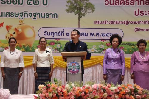 โอกาสนี้ นางกนกอร โพธิ์สิงห์ พัฒนาการจังหวัดอุบลราชธานี ได้กล่าวรายงานวัตถุประสงค์การจัดกิจกรรมต่อประธานในพิธี โดยกล่าวว่า กรมการพัฒนาชุมชนได้ส่งเสริมและสนับสนุนการดำเนินงานของกลุ่มออมทรัพย์เพื่อการผลิตมาอย่างต่อเนื่องตั้งแต่ปี พ.ศ. 2517 และกำหนดให้วันที่ 6 มีนาคมของทุกปี เป็นวันคล้ายวันก่อตั้งกลุ่มออมทรัพย์เพื่อการผลิต พร้อมกำหนดช่วงวันที่ 6–8 มีนาคม ของทุกปี เป็นสัปดาห์รณรงค์การประหยัดและการออมของประชาชน เพื่อปลูกฝังวินัยทางการเงินและสร้างภูมิคุ้มกันทางเศรษฐกิจให้กับครัวเรือนและชุมชน