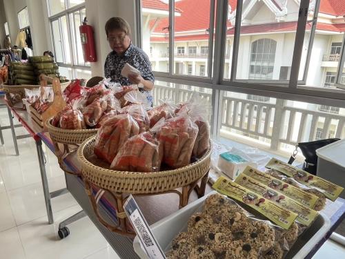 5.กลุ่มสิรินธาร อำเภอเมืองอุบลราชธานี ผลิตภัณฑ์กล้วยฉาบ กล้วยเบรคแตก ฟักทองอบกรอบ��ผลิตภัณฑ์ที่นำมาจำหน่ายในครั้งนี้มีความหลากหลาย ทั้งผ้าฝ้ายทอมือที่สะท้อนอัตลักษณ์ท้องถิ่น อาหารพื้นถิ่น และงานฝีมือที่งดงาม แสดงให้เห็นถึงภูมิปัญญา ความคิดสร้างสรรค์ และความตั้งใจของคนในชุมชนที่มุ่งพัฒนาคุณภาพสินค้าอย่างต่อเนื่อง กิจกรรมดังกล่าวได้รับความสนใจจากหัวหน้าส่วนราชการ หน่วยงานภาครัฐ และผู้เข้าร่วมประชุมเป็นอย่างดี มีการอุดหนุนสินค้าและให้กำลังใจแก่ผู้ประกอบการอย่างคึกคัก นับเป็นอีกหนึ่งช่องทางสำคัญที่ช่วยเพิ่มยอดจำหน่าย สร้างรายได้โดยตรงให้กับกลุ่มผู้ผลิต และกระตุ้นเศรษฐกิจหมุนเวียนภายในจังหวัด