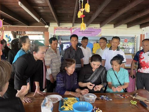 นางฐิติวรดา เทพเสนา ประธานแม่บ้านมหาดไทยจังหวัดอุบลราชธานี พร้อมด้วยนางกนกอร โพธิ์สิงห์ พัฒนาการจังหวัดอุบลราชธานี นางสาวนิภาภร บุญประสิทธิ์ ผู้อำนวยการกลุ่มงานส่งเสริมการพัฒนาชุมชน และสมาชิกชมรมแม่บ้านมหาดไทยจังหวัดอุบลราชธานี ร่วมลงพื้นที่เยี่ยมชมและให้กำลังใจกลุ่มทอผ้าและตัดเย็บบ้านคำขวาง