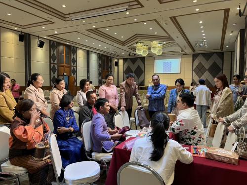 กลุ่มเป้าหมายในการอบรมครั้งนี้ประกอบด้วย พัฒนาการจังหวัด นักวิชาการพัฒนาชุมชน และกลุ่มผู้ผลิต ผู้ประกอบการด้านผ้าและงานหัตถกรรมจาก 10 จังหวัด ได้แก่